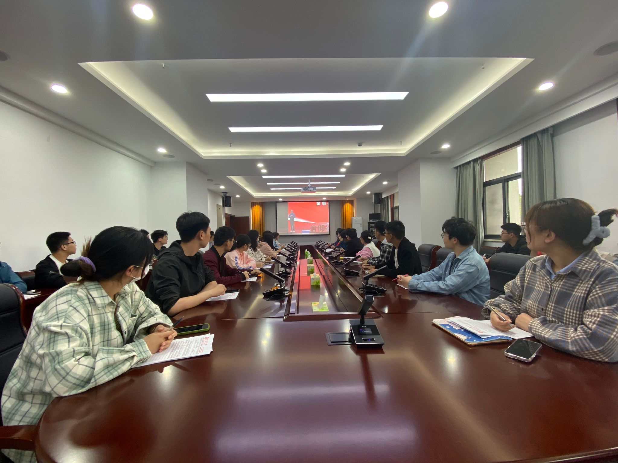 辅导员、学生党员在耒耜大楼F304、1026会议室集中观看。