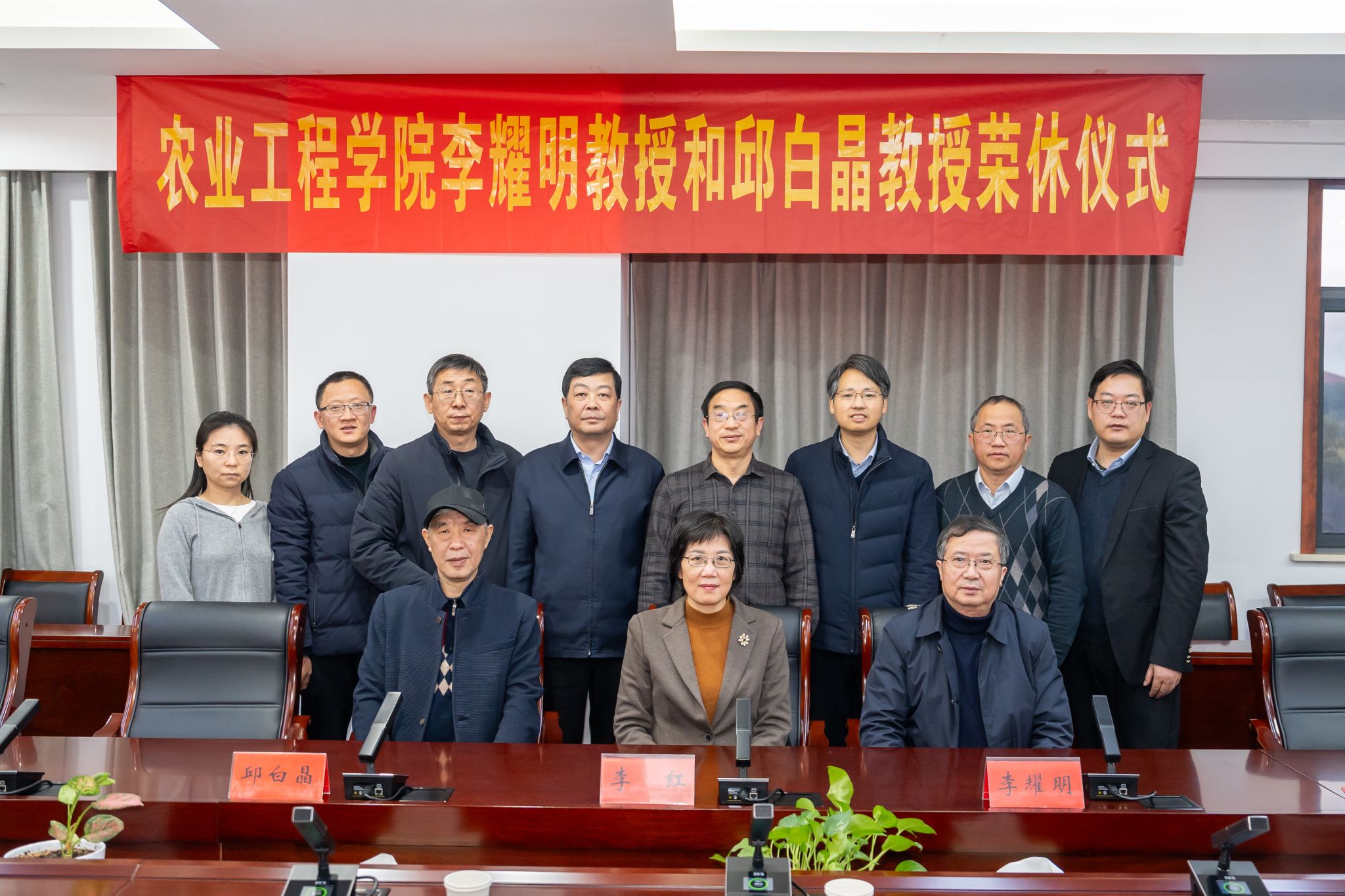 在耒耜大楼F304会议室举行关工委老教师李耀明和邱白晶的荣休仪式。校党委常委、副校长李红,院党委书记、关工委主任廖志凌,院长贾卫东,重点实验室主任徐立章,副院长王新忠,副院长黄文岳,副书记、副院长、关工委副主任周军,关工委副主任陈树人,关工委青年委员、工会主席徐香茹等师生代表60余人参加仪式。仪式由廖志凌主持。