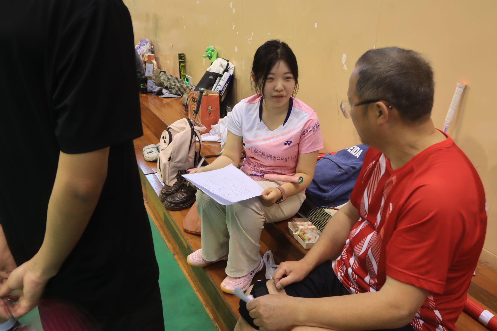 在羽毛球馆内,陈树人老师身着运动装束,先后参与男双、混双等比赛项目,通过实战演示发球技巧、攻防策略等专业要领。赛后,陈老师结合赛场表现开展微座谈,强调“体育竞技与学术研究具有相通性,都需要精准判断、团队协作和永不言败的精神”。