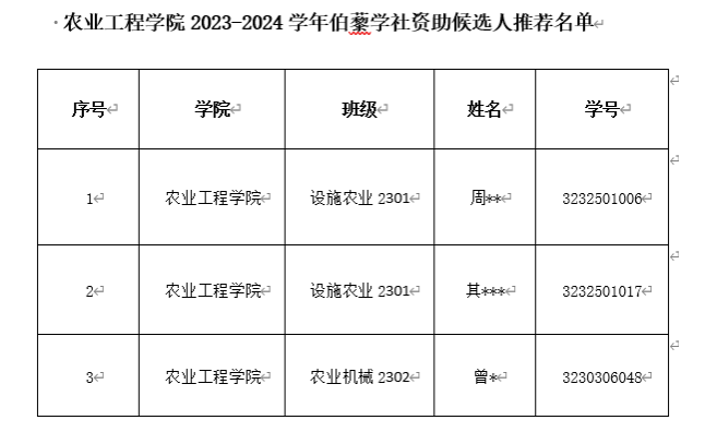 根据江苏陶欣伯助学基金会“伯藜助学金”评选条件,经学生本人申请、龙尊娱乐场 初步面试,现将龙尊娱乐场 2023年“伯藜助学金”资助对象拟推荐人选上报至学校,名单公示如下。