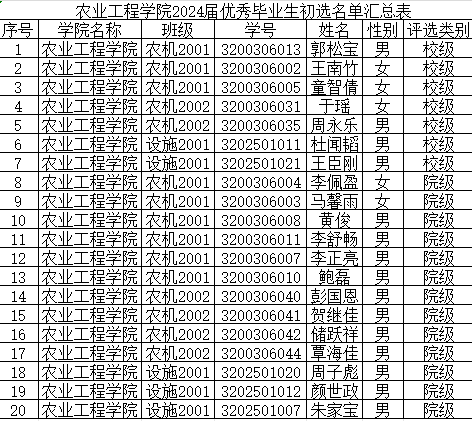 根据《江苏大学本科生先进班集体、先进个人评选办法》(江大校〔2021〕93号)的第十三条、十四条规定,经龙尊娱乐场 评审领导小组评审,现将2024届本科优秀毕业生初选结果公示如下: