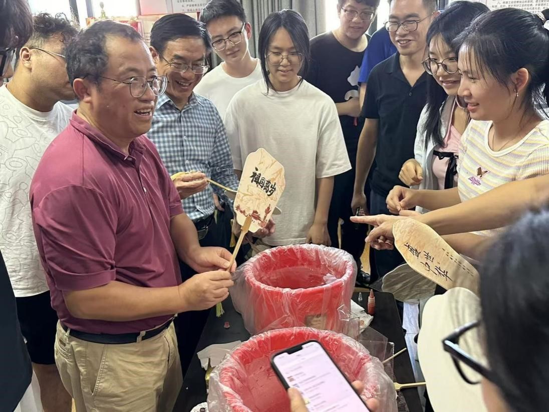 On September 29th, the College of Agriculture and Engineering carried out the activity of "Painting Lacquer Fans Together on National Day and Showing New Face of Inheritance Culture" to welcome the 75th anniversary of the founding of the People's Republic of China.Secretary of the Party Committee of the College, Liao Zhiling, Deputy Secretary, Vice President Zhou Jun, Deputy Director of the Committee, Chen Shuren, and other young teachers and students participated in the activity.