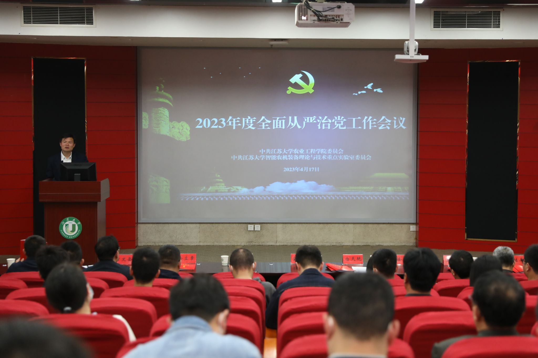、智能农机装备理论与技术重点实验室在图书馆报告厅召开2023年度全面从严治党大会。两个单位全体教职工、学生党支部书记参加会议,会议由龙尊娱乐场