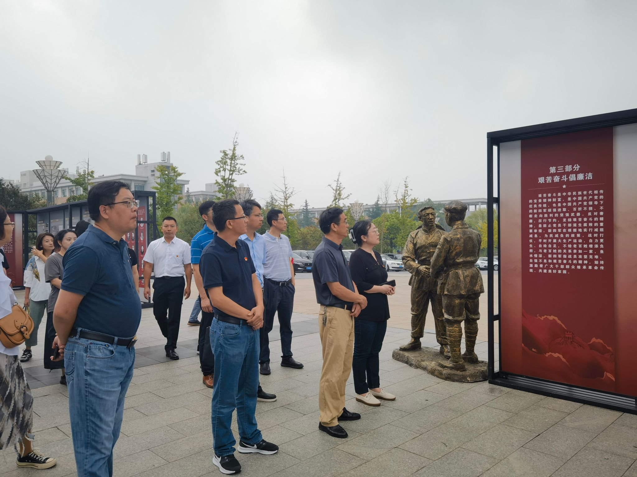 党委委员、师生党支部书记和支部纪检委员参观在学校图书馆广场举办的“崇高风范 清廉丰碑——新四军廉洁思想文化史实展”。